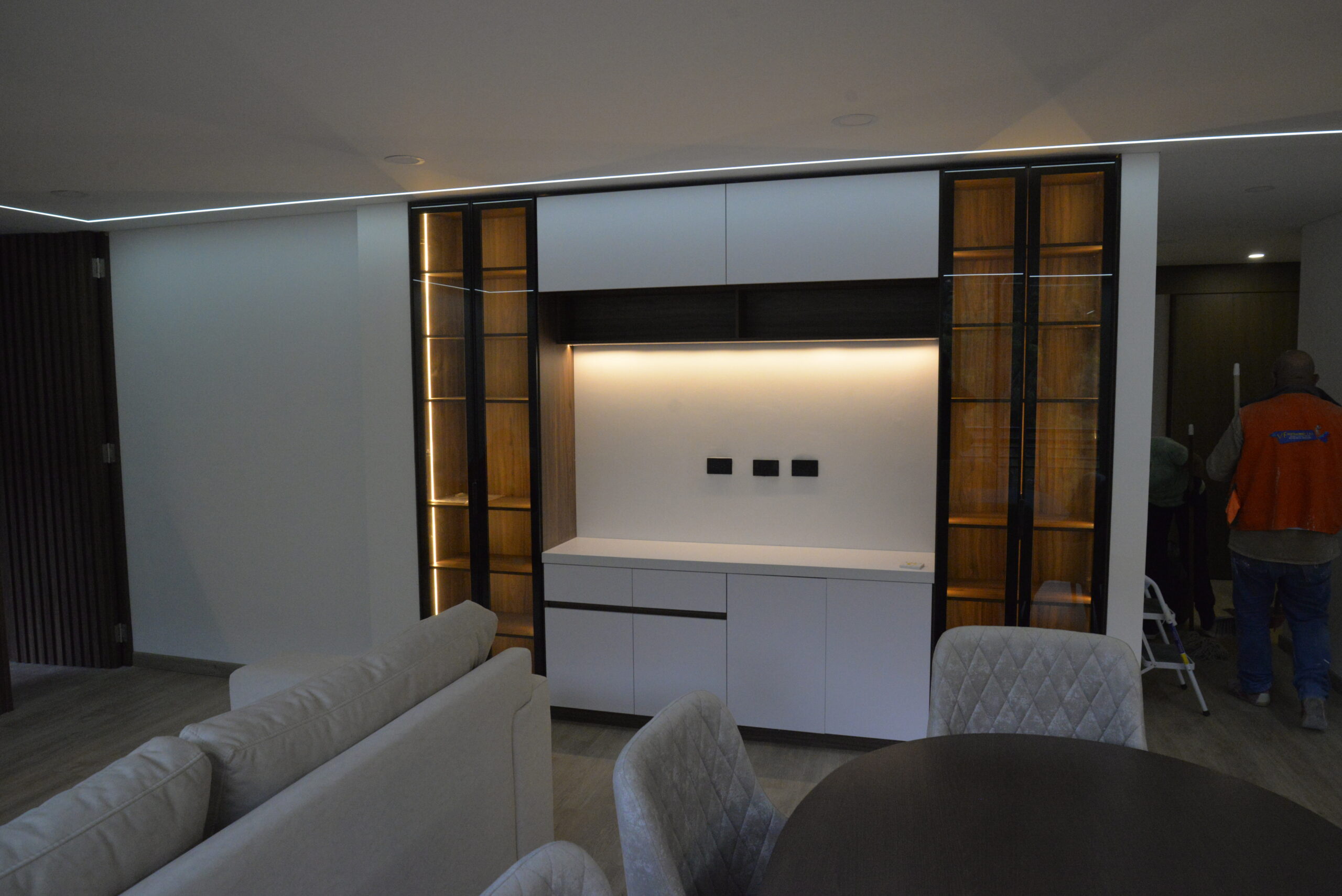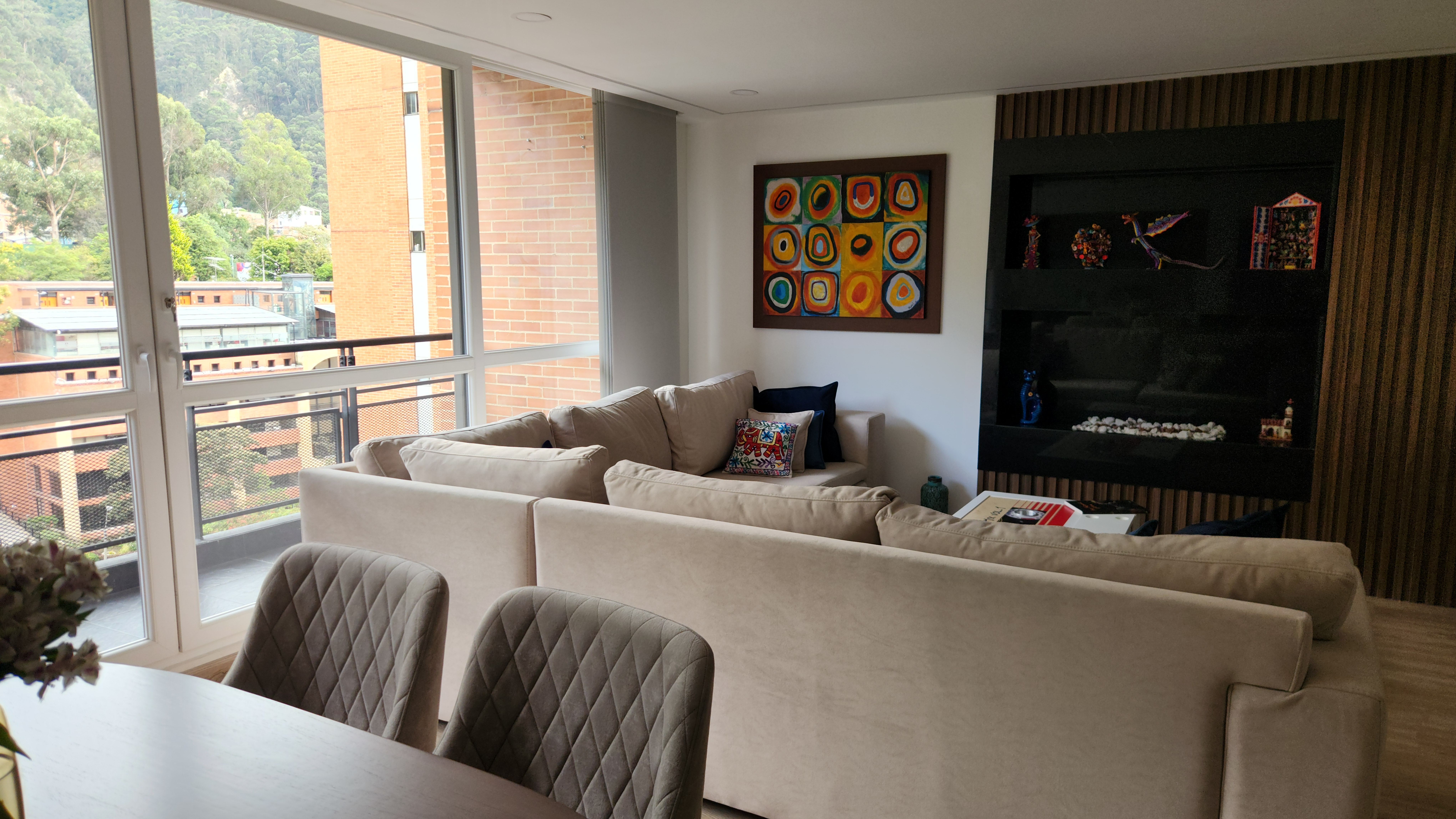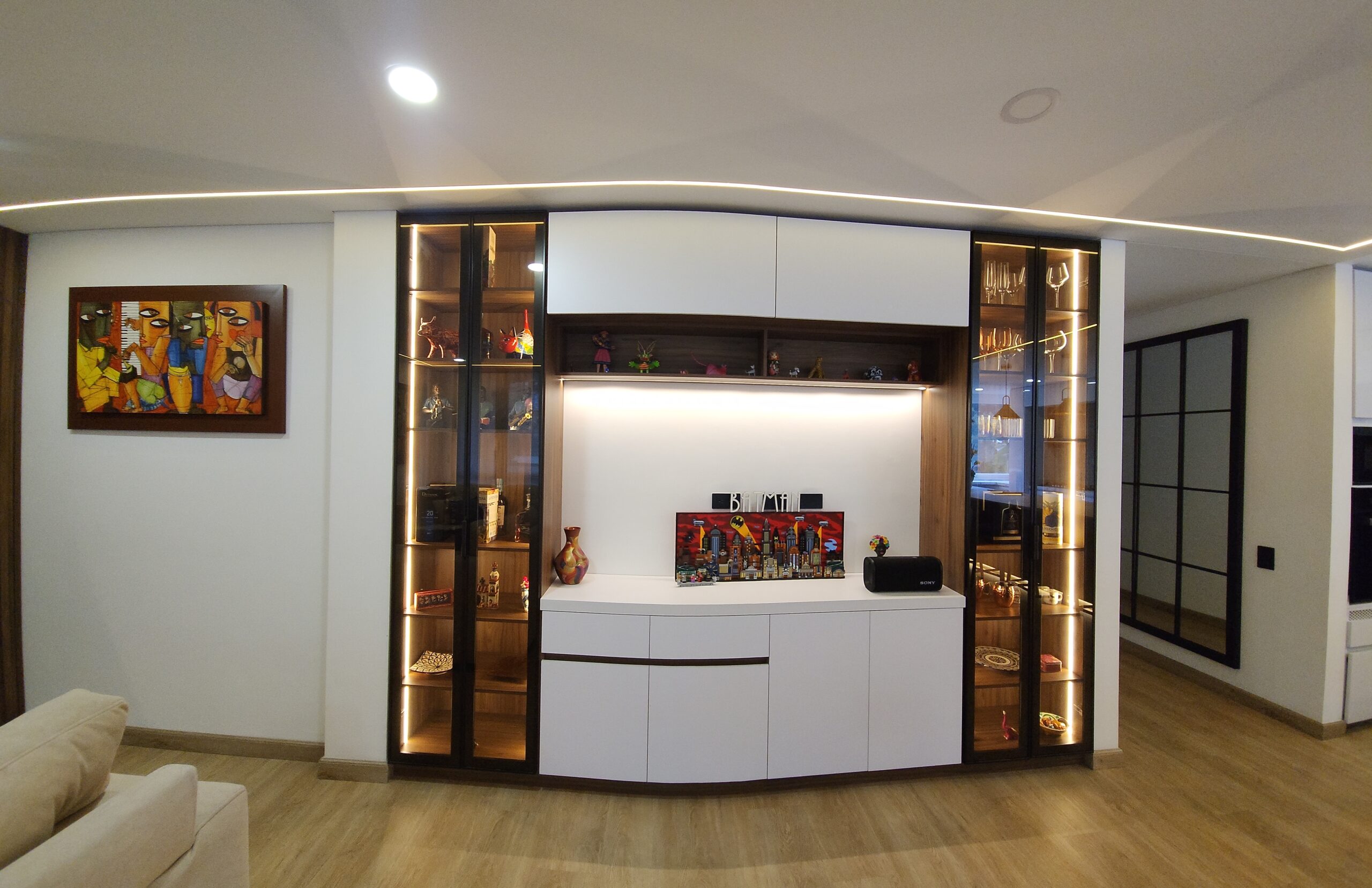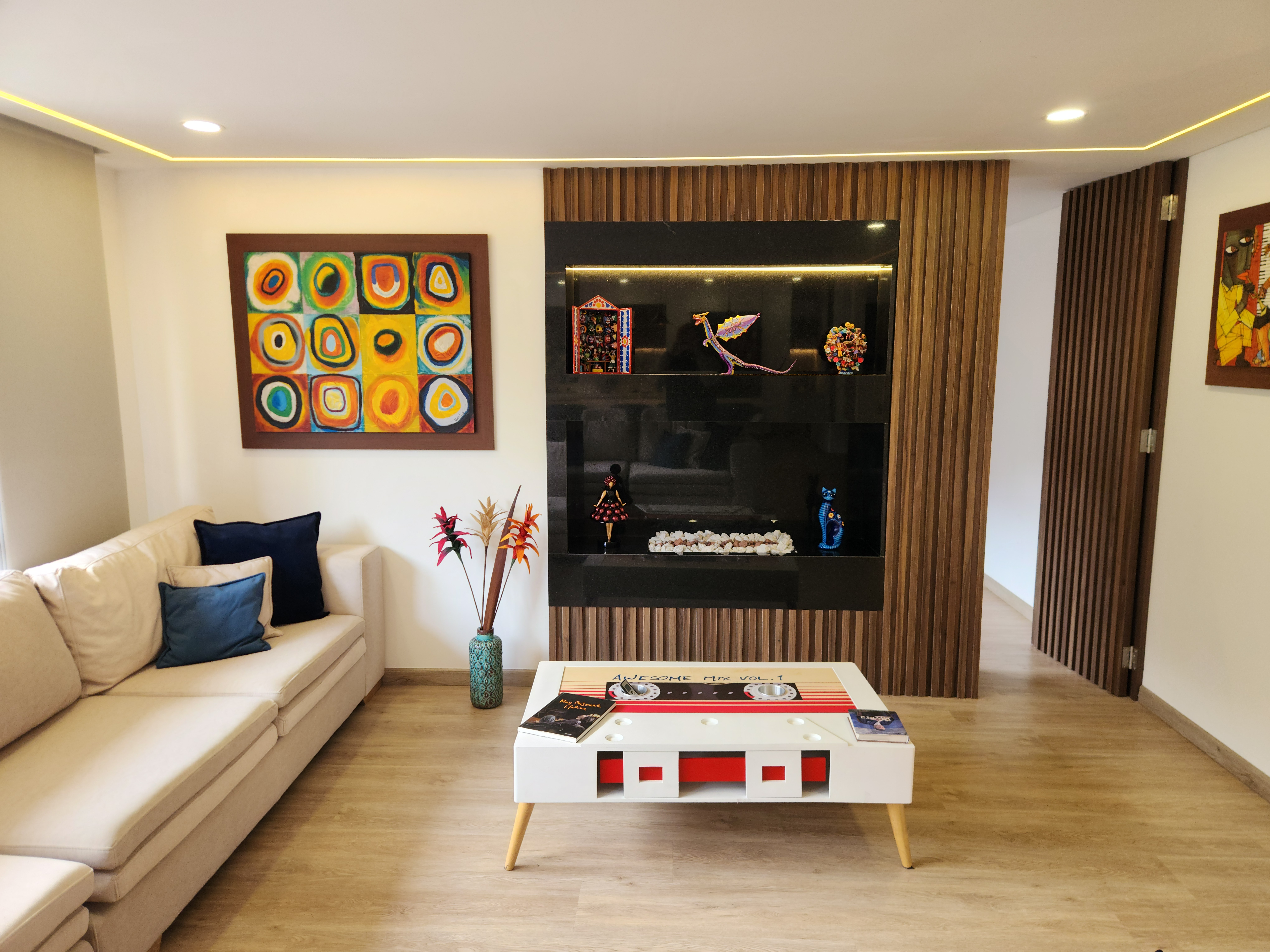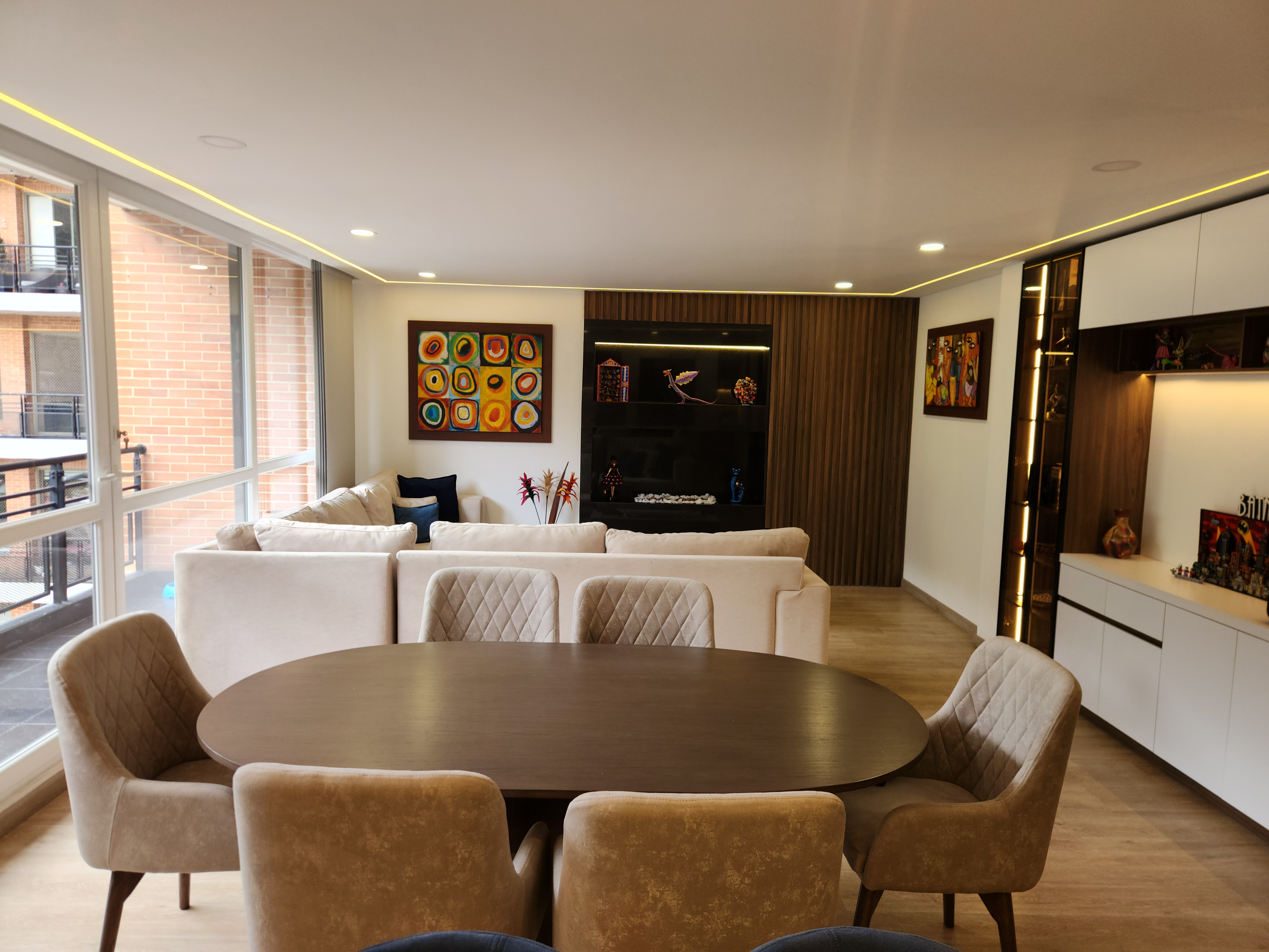 El Desafío: Erradicar los problemas de temperatura extrema del apartamento y maximizar cada metro cuadrado para una familia que buscaba integrar su cocina con la sala y crear espacios con personalidad propia.