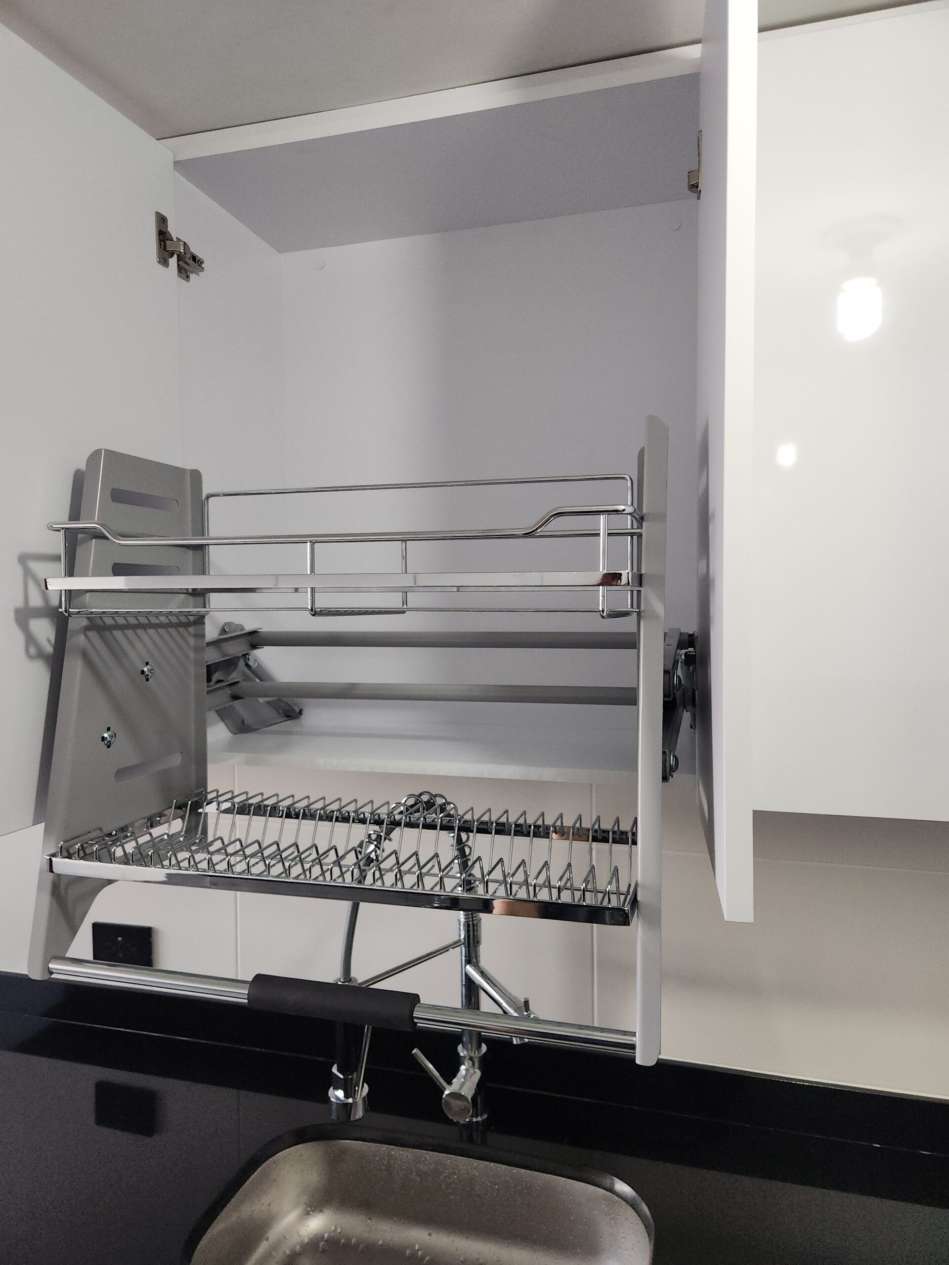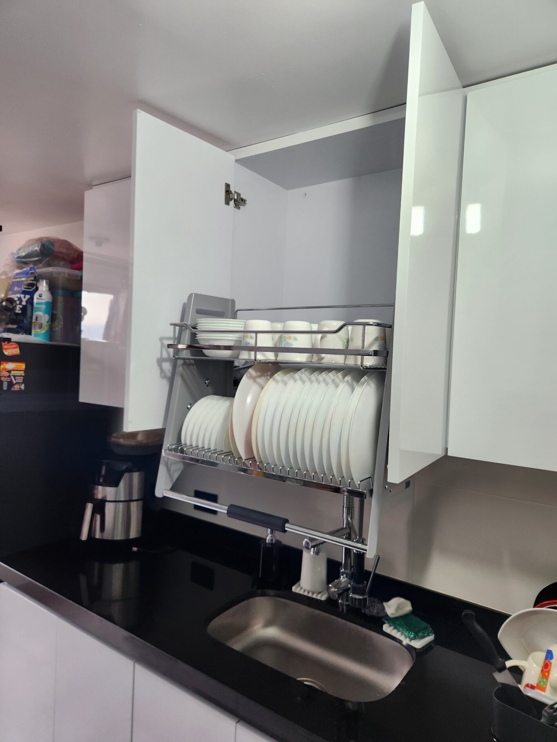 La Solución: Diseñamos y construimos una cocina de líneas modernas con almacenamiento optimizado y circulaciones adaptadas para facilitar el desplazamiento, debido a la movilidad limitada dentro del lugar. Por eso mismo, esta intervención que sigue en diseño a necesidad del cliente fue planificada estratégicamente por fases y se ha hecho por etapas tanto en construcción, siendo una de ellas la instalación de una puerta de seguridad, elevando tanto el estándar estético como la tranquilidad y comodidad del hogar.