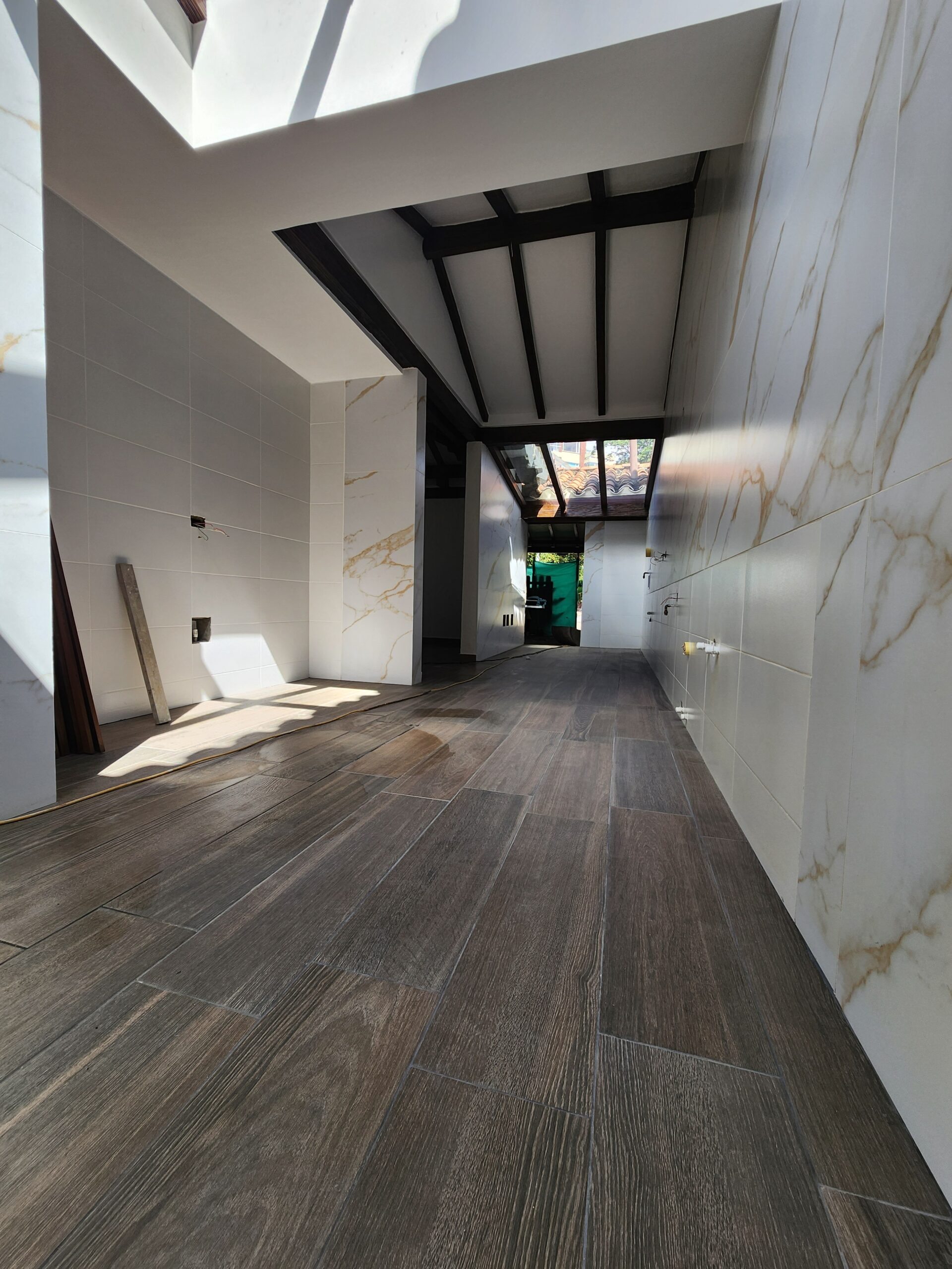 La Solución: Aplicamos principios de diseño enfocado en transformar la vivienda en un entorno seguro, accesible y funcional, sin sacrificar su calidez residencial. Diseñamos e instalamos estratégicamente elementos de apoyo ergonómico y barras de seguridad que proporcionan total estabilidad en el desplazamiento, integrándose armónicamente a la estética del espacio. A la par, ejecutamos una renovación técnica de raíz con la reconstrucción integral de los sistemas hídricos, solucionando los problemas ocultos del inmueble y asegurando la tranquilidad y durabilidad del proyecto a largo plazo.